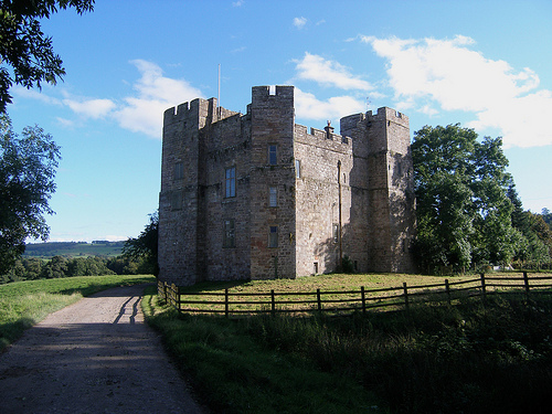 and fortified houses like Harewood and Langley Castles, emphasizing